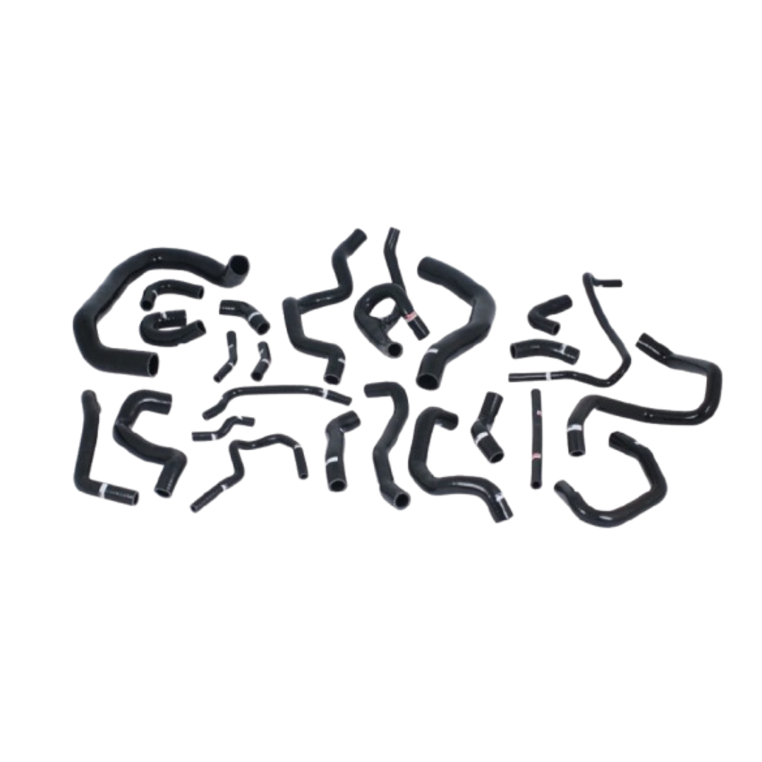 Deze door do88 ontwikkelde slangkit vervangt de originele OEM radiator- en koelsysteemslangen. De slangen zijn volledig vervaardigd uit hoogwaardig siliconen voor een uitstekende afwerking en langdurige duurzaamheid. Met drie tot vijf lagen versteviging, afhankelijk van de binnendiameter, kunnen de slangen hoge druk en temperaturen langdurig weerstaan. Originele rubberen slangen kunnen vaak scheuren door veroudering, maar deze siliconen oplossing biedt een duurzame vervanging en verbetert tevens het uiterlijk van het motorcompartiment.