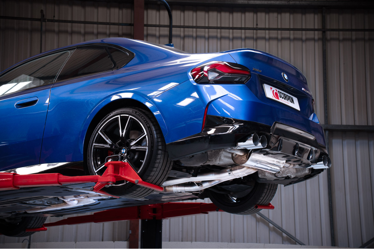 De Scorpion GPF-Back Systeem met elektronische klep voor de BMW G42 M240i (2021-2024) biedt een uitstekende combinatie van prestaties, geluid en stijl. Ontworpen met Scorpion’s bewezen motorsporttechnologie, is dit uitlaatsysteem een directe vervanging voor de OEM-uitlaat, zonder aanpassingen, en het levert een aanzienlijke verbetering van de gasstroom, vermogenswinst en geluidservaring. Dit 70mm/2.75” systeem is gemaakt van hoogwaardig T304 roestvrij staal en beschikt over een elektronisch gestuurde klep, waardoor de bestuurder controle heeft over het geluid via de originele rijmodusschakelaar in de auto. Of u nu kiest voor een sportieve drive of een meer ingetogen rit, het systeem biedt maximale flexibiliteit in het regelen van het geluid. Met verschillende tailpipe-opties, waaronder de kenmerkende quad 90mm gepolijste of zwarte keramische Daytona, gepolijste STW of OE-stijlpijpen, kunt u de esthetiek van uw BMW M240i verfijnen volgens uw persoonlijke voorkeur. Het GPF-back systeem is ontworpen om de geluidservaring te verbeteren zonder hinderlijke resonanties, terwijl de gewichtsbesparing ten opzichte van het OEM-systeem bijdraagt aan een dynamischere rijervaring. Daarnaast biedt Scorpion ook een krachtige 5″ downpipe-optie, beschikbaar met een dual 200-cell sportkatalysator of decat voor degenen die streven naar maximale tuningmogelijkheden en vermogenstoename.